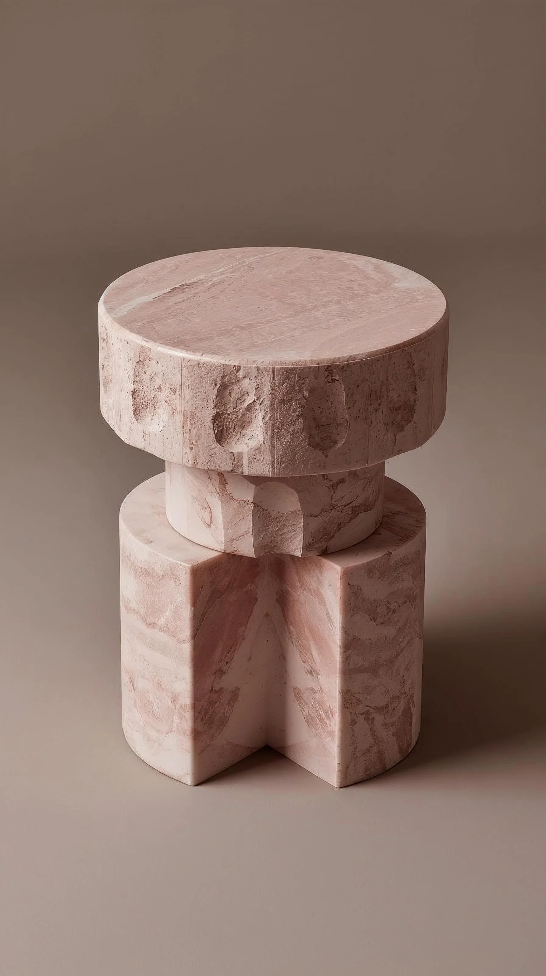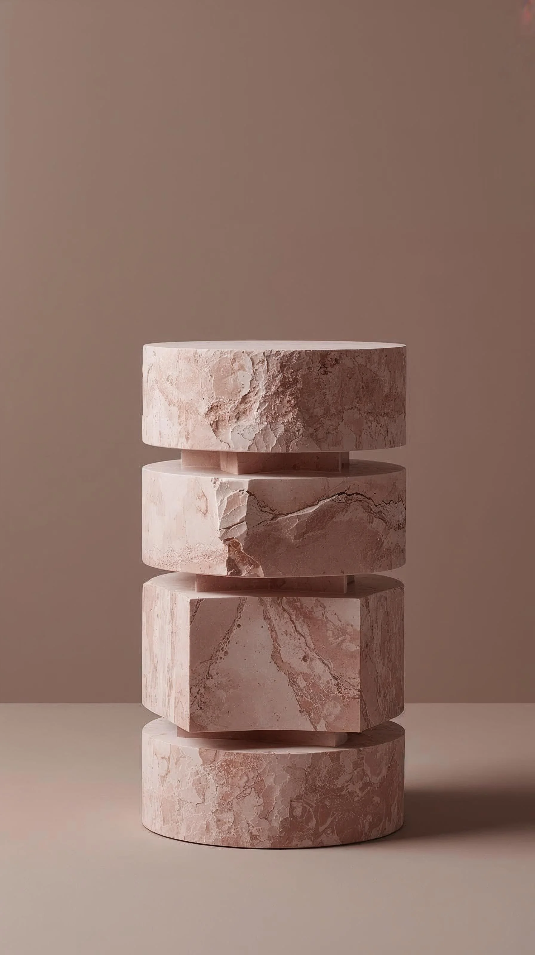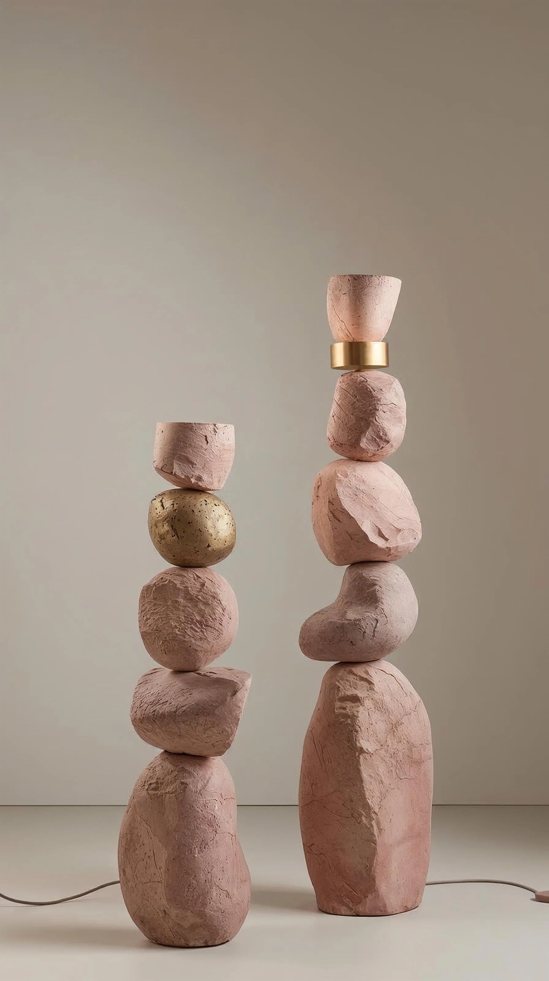 Transformative pigmented stone and marble floor lamp and table sculptures